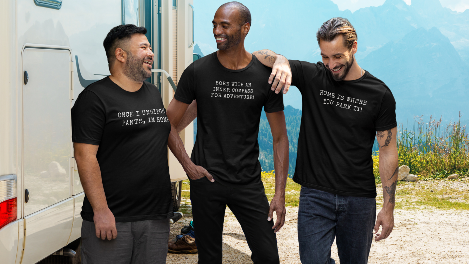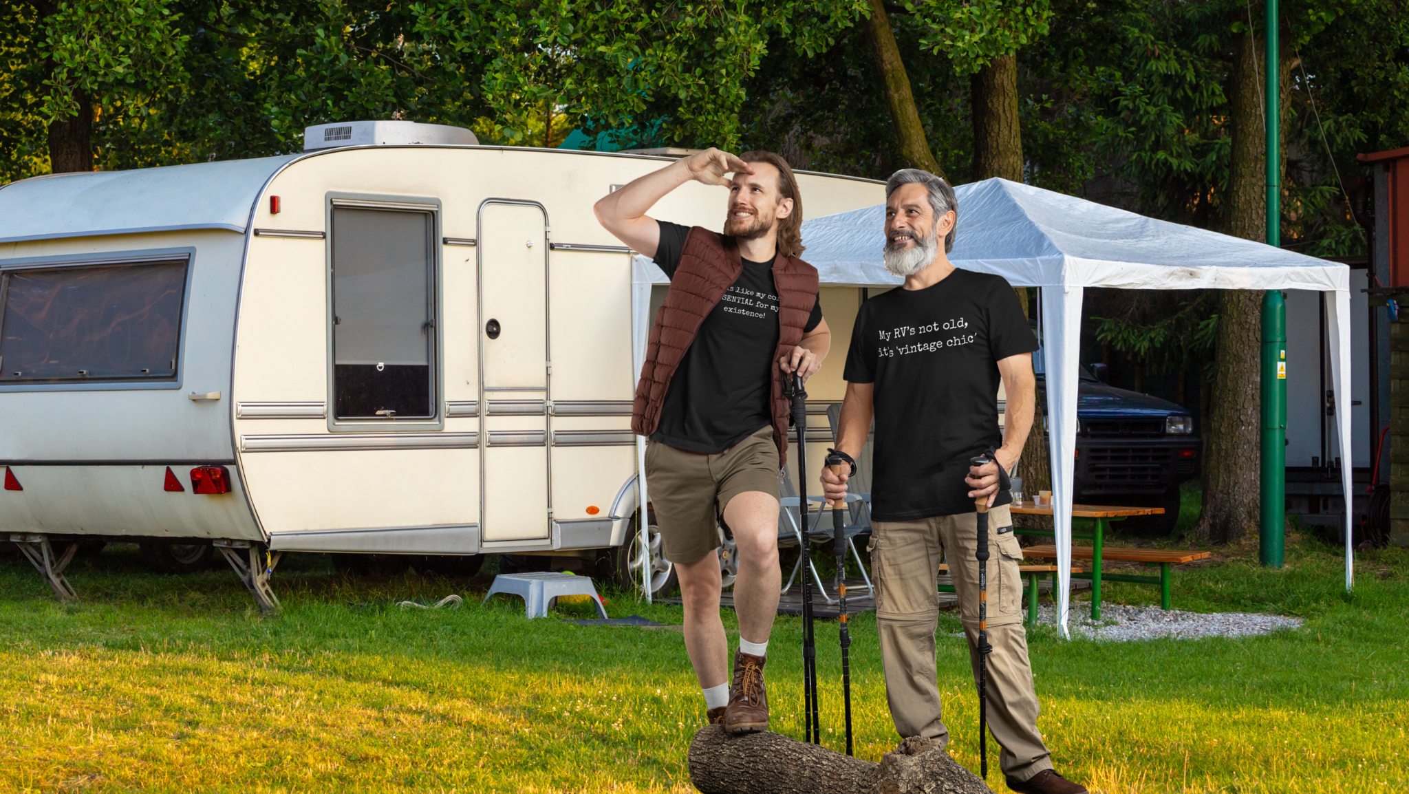 At Camper Living Tees, we enhance your outdoor experiences with custom tees that feature simple but humorous and heartwarming designs, perfectly capturing the essence of life on the road. Whether you’re a seasoned RV traveller or just beginning your caravan journey, our collection has something to make you smile and showcase your love for camping and motorhome living.